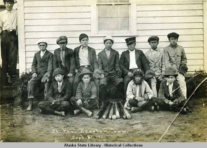 St. Paul Baseball Team, September 21, 1921. Richard G. and Mary S. Culbertson Photograph Collection, Alaska State Library, Historical Collections, ASL-P390-038.